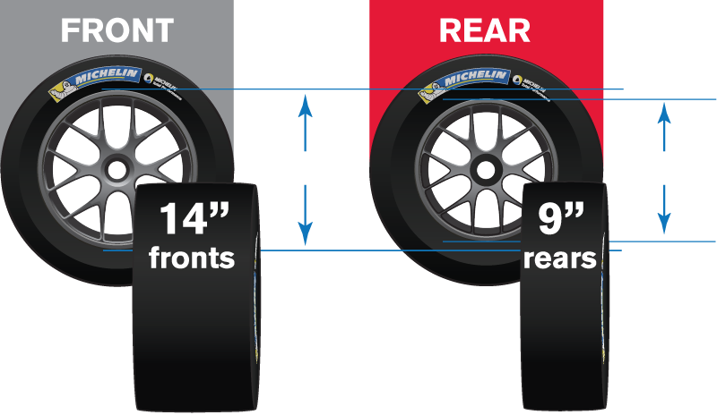 The Nissan GT-R LM NISMO will race on Michelin 31/71-18 (front) and 20/71-16 (rear) tyres. The tyre package is dramatically different from our rivals.